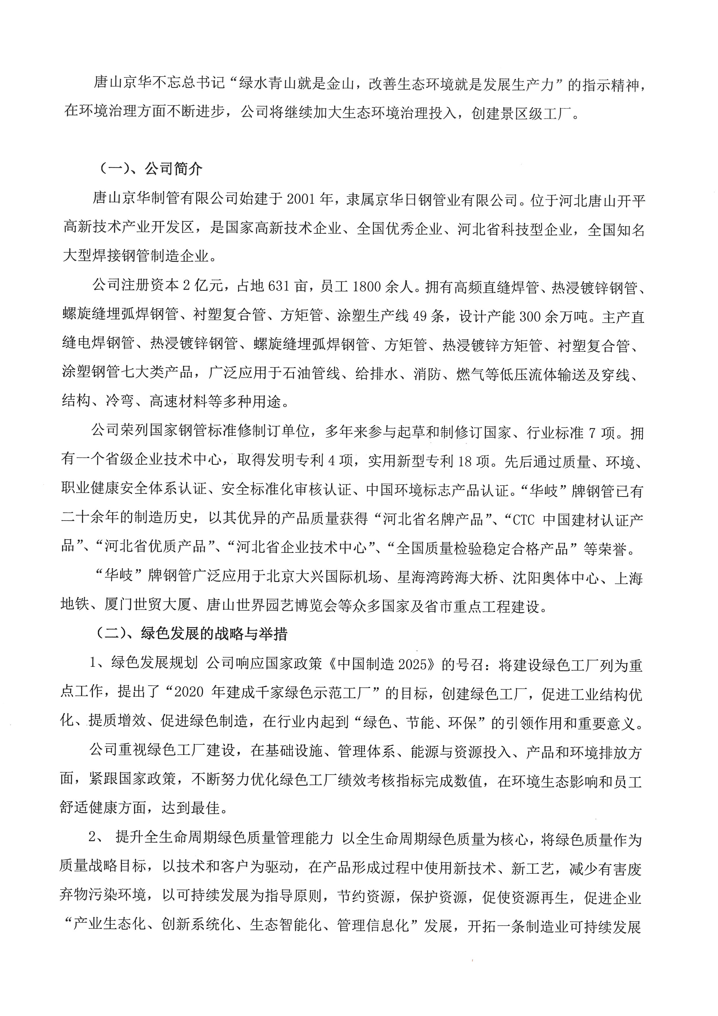 绿色制造体系示范展示--唐山京华有限公司