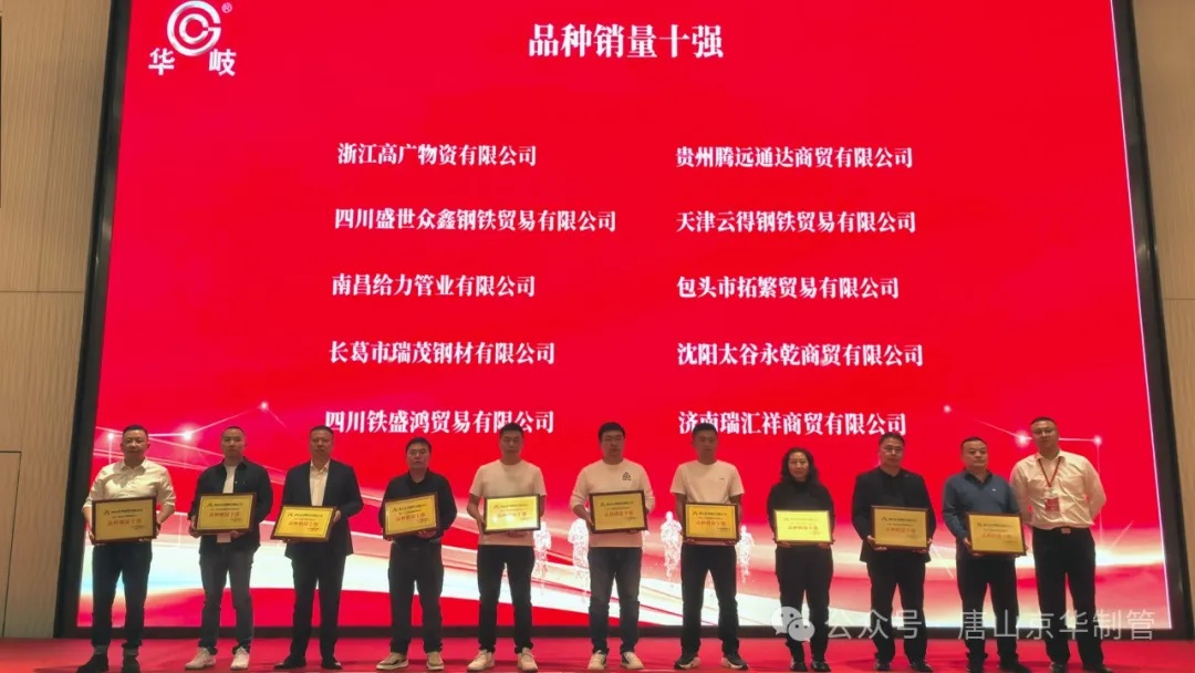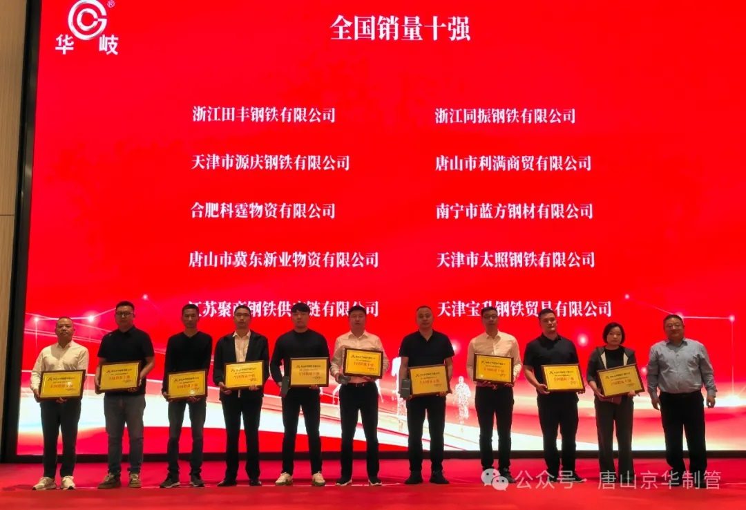 公司向浙江田丰钢铁有限公司等10家单位颁发了“2024年度全国销量十强”,向浙江高广物资有限公司等10家单位颁发了“2024年度品种销量十强”,向唐山市鑫中正商贸有限公司等15家单位颁发了“2024年度优质合作伙伴”奖项。